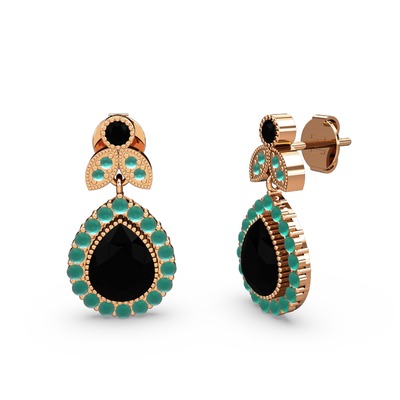 Siyah zirkon ve kök zümrüt 925 ayar rose altın kaplama gümüş küpe