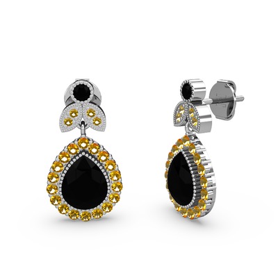 Siyah zirkon ve sitrin 18 ayar beyaz altın küpe