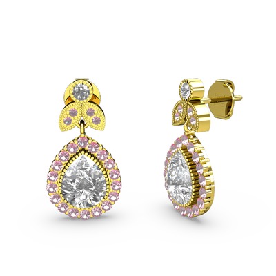 Swarovski ve pembe kuvars 8 ayar altın küpe