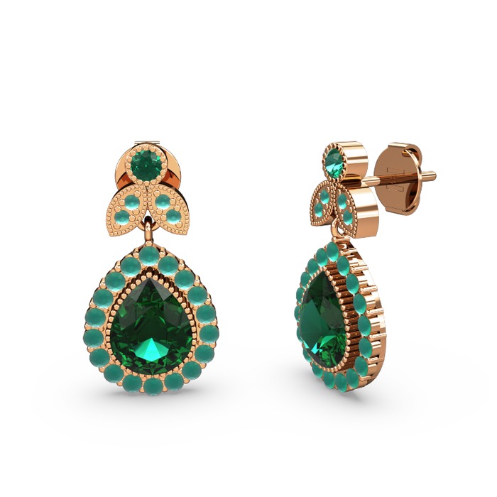 Yeşil kuvars ve kök zümrüt 14 ayar rose altın küpe