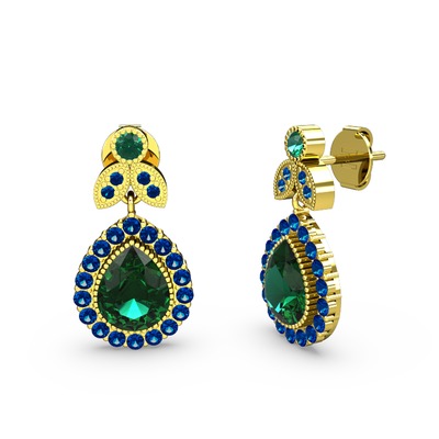 Yeşil kuvars ve lab safir 925 ayar altın kaplama gümüş küpe