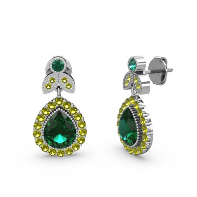 Yeşil kuvars ve peridot 14 ayar beyaz altın küpe