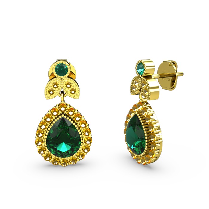 Yeşil kuvars ve sitrin 18 ayar altın küpe