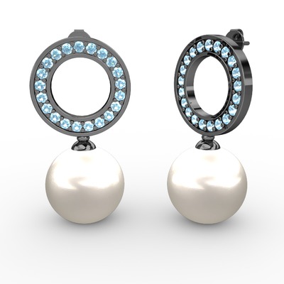 Inci ve akuamarin 925 ayar siyah rodyum kaplama gümüş küpe