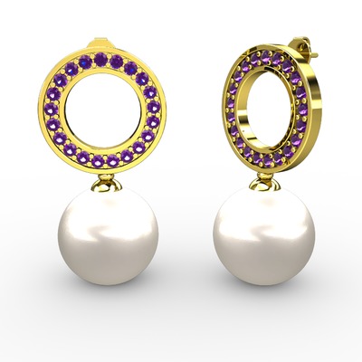 Inci ve ametist 925 ayar altın kaplama gümüş küpe