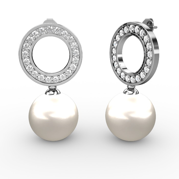 Inci ve beyaz zirkon 8 ayar beyaz altın küpe
