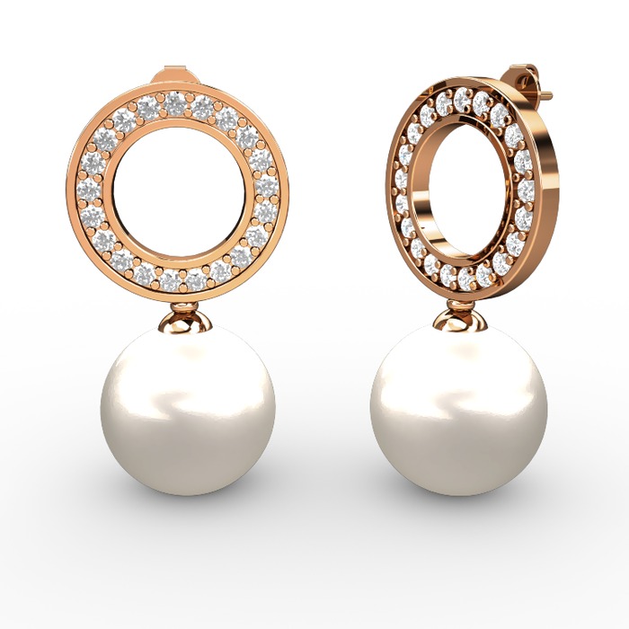 Inci ve beyaz zirkon 8 ayar rose altın küpe
