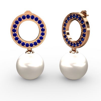 Inci ve lab safir 14 ayar rose altın küpe
