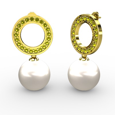 Inci ve peridot 925 ayar altın kaplama gümüş küpe