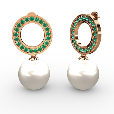 Inci ve yeşil kuvars 18 ayar rose altın küpe