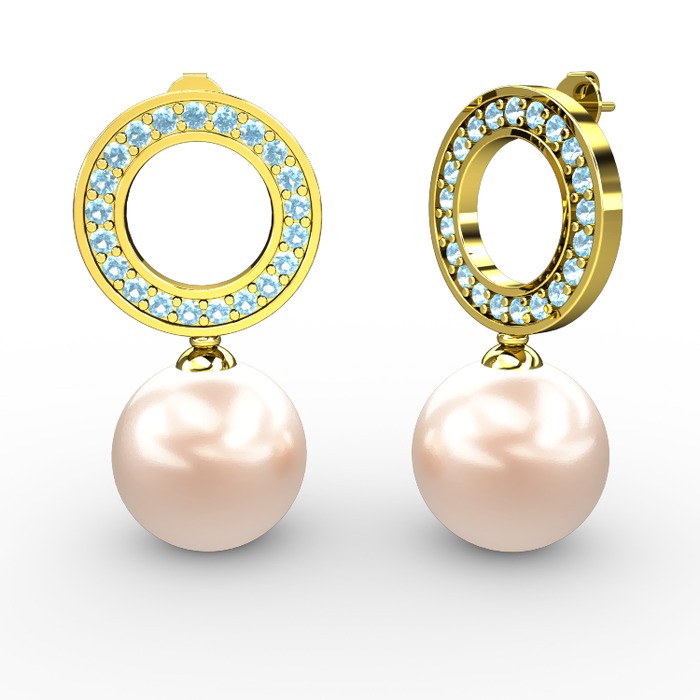 Pembe inci ve akuamarin 8 ayar altın küpe