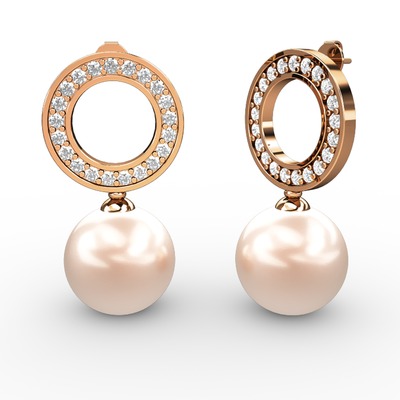 Pembe inci ve beyaz zirkon 8 ayar rose altın küpe
