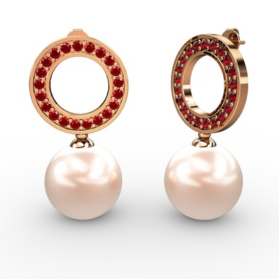 Pembe inci ve garnet 14 ayar rose altın küpe