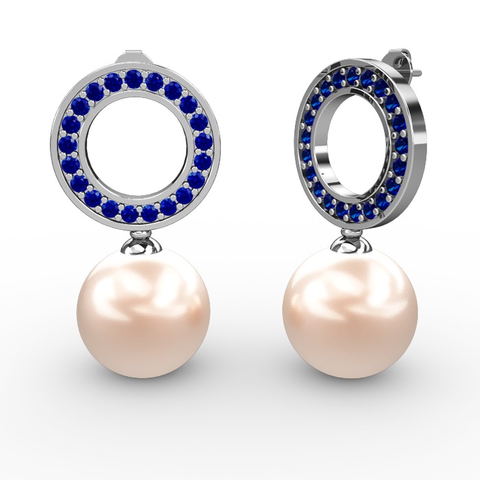 Pembe inci ve lab safir 8 ayar beyaz altın küpe
