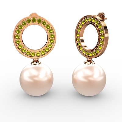 Pembe inci ve peridot 8 ayar rose altın küpe