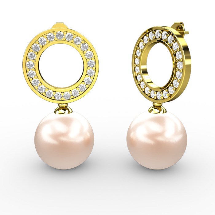 Pembe inci ve swarovski 925 ayar altın kaplama gümüş küpe
