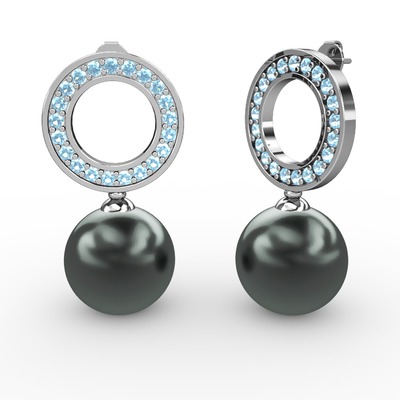 Siyah inci ve akuamarin 925 ayar gümüş küpe