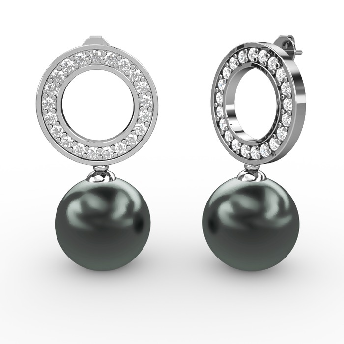 Siyah inci ve beyaz zirkon 18 ayar beyaz altın küpe