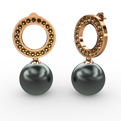 Siyah inci ve dumanlı kuvars 8 ayar rose altın küpe