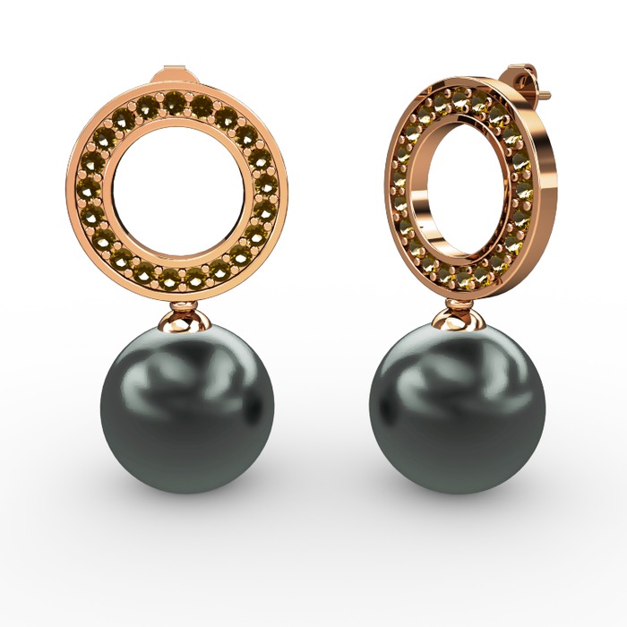 Siyah inci ve dumanlı kuvars 925 ayar rose altın kaplama gümüş küpe