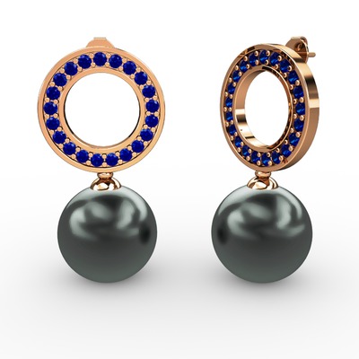 Siyah inci ve lab safir 8 ayar rose altın küpe