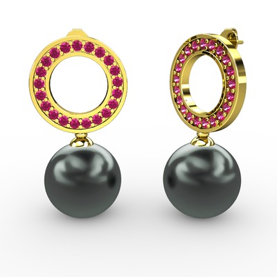 Siyah inci ve rodolit garnet 14 ayar altın küpe