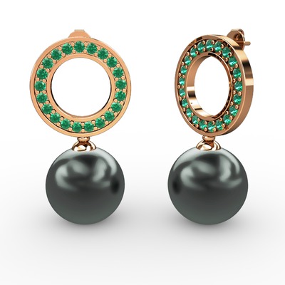 Siyah inci ve yeşil kuvars 14 ayar rose altın küpe