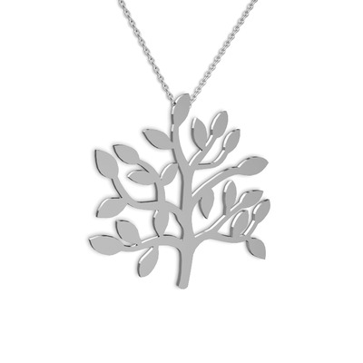 Hayat Ağacı Kolye - 14 ayar beyaz altın kolye (40 cm gümüş rolo zincir)
