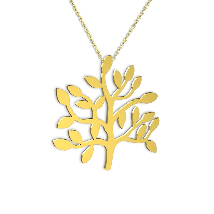 Hayat Ağacı Kolye - 8 ayar altın kolye (40 cm gümüş rolo zincir)