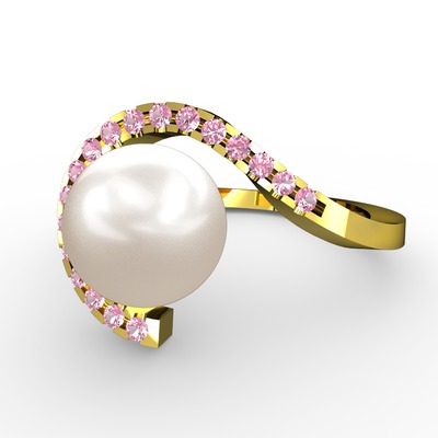 Inci ve pembe kuvars 925 ayar altın kaplama gümüş yüzük