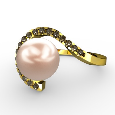 Pembe inci ve dumanlı kuvars 18 ayar altın yüzük