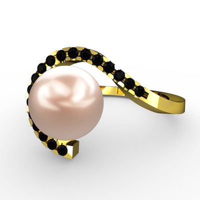 Pembe inci ve siyah zirkon 925 ayar altın kaplama gümüş yüzük