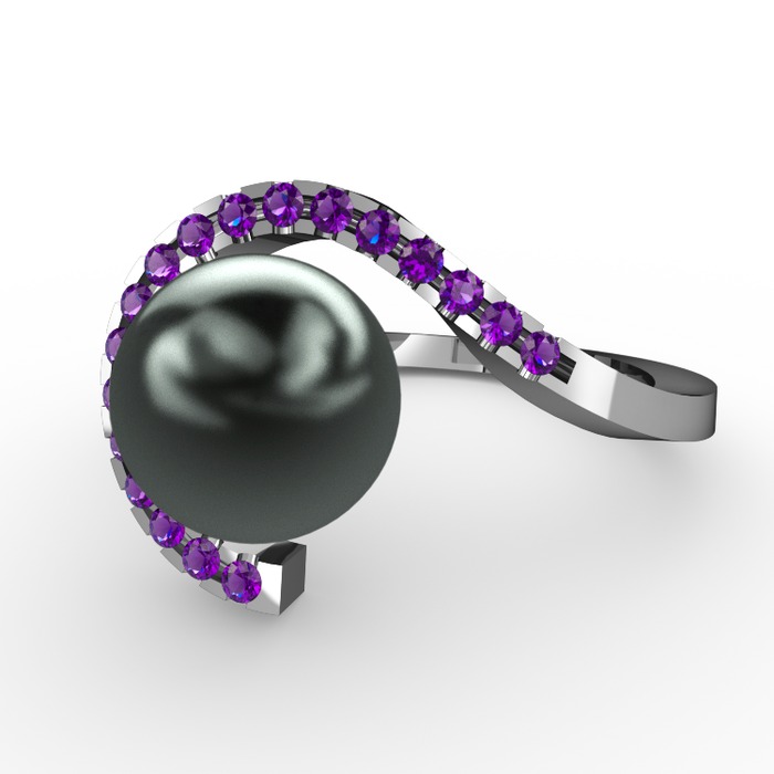 Siyah inci ve ametist 925 ayar gümüş yüzük