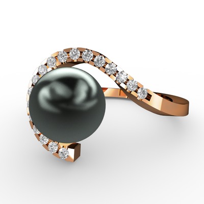 Siyah inci ve beyaz zirkon 18 ayar rose altın yüzük