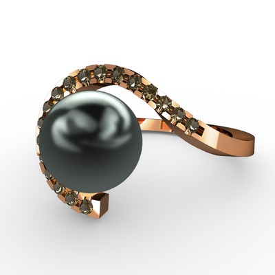 Siyah inci ve dumanlı kuvars 925 ayar rose altın kaplama gümüş yüzük