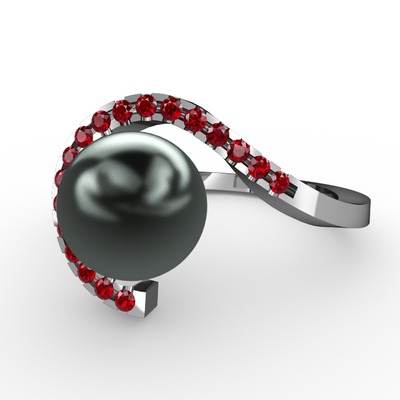 Siyah inci ve garnet 14 ayar beyaz altın yüzük