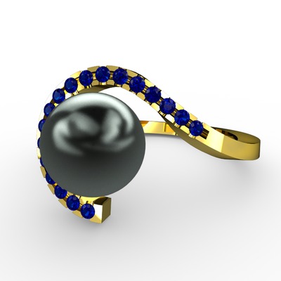 Siyah inci ve lab safir 18 ayar altın yüzük
