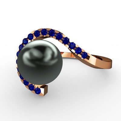 Siyah inci ve lab safir 925 ayar rose altın kaplama gümüş yüzük