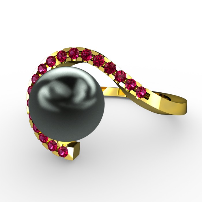 Siyah inci ve rodolit garnet 18 ayar altın yüzük