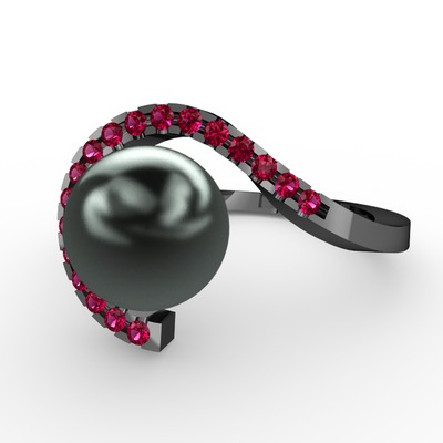 Siyah inci ve rodolit garnet 925 ayar siyah rodyum kaplama gümüş yüzük