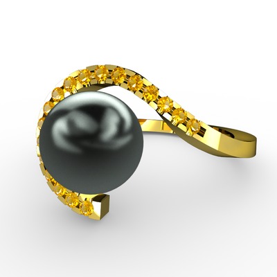 Siyah inci ve sitrin 925 ayar altın kaplama gümüş yüzük