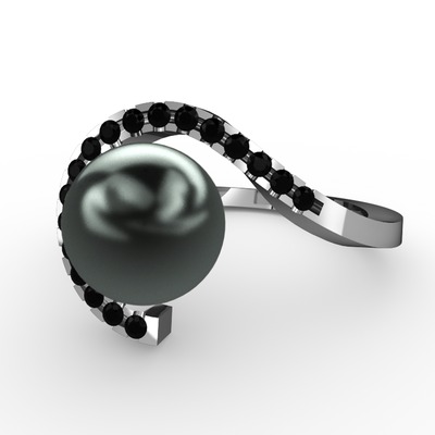 Siyah inci ve siyah zirkon 18 ayar beyaz altın yüzük