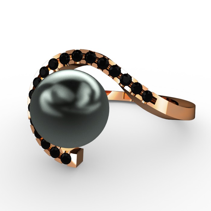 Siyah inci ve siyah zirkon 925 ayar rose altın kaplama gümüş yüzük