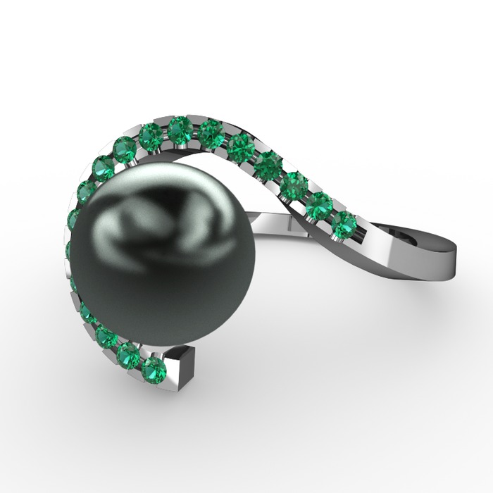 Siyah inci ve yeşil kuvars 18 ayar beyaz altın yüzük