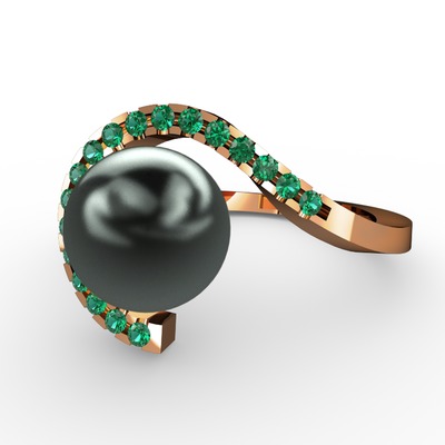 Siyah inci ve yeşil kuvars 18 ayar rose altın yüzük