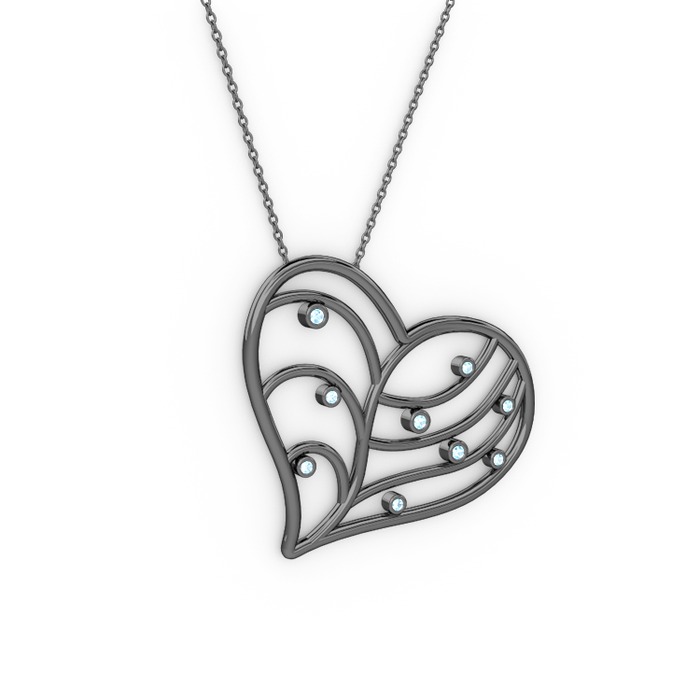 Akuamarin 925 ayar siyah rodyum kaplama gümüş kolye (40 cm gümüş rolo zincir)