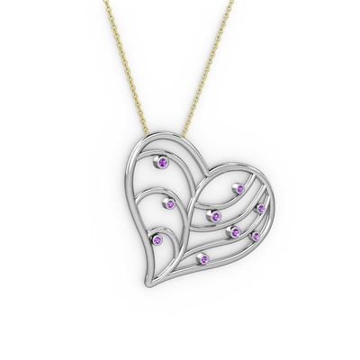 Ametist 8 ayar beyaz altın kolye (40 cm altın rolo zincir)