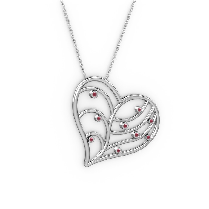 Herz Kalp Kolye - Kök yakut 925 ayar gümüş kolye (40 cm gümüş rolo zincir)