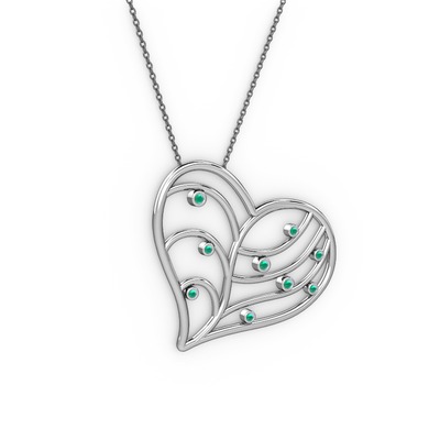 Kök zümrüt 14 ayar beyaz altın kolye (40 cm gümüş rolo zincir)