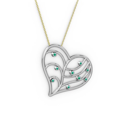 Kök zümrüt 8 ayar beyaz altın kolye (40 cm altın rolo zincir)